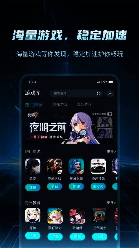 1、高效加速引擎:采用先进加速技术,确保游戏数据传输高效稳定,降低延迟。