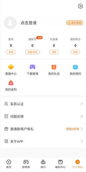 1、首先在本站下载并安装4197游戏盒,安装完成后进入主界面,点击右下角“个人中心”。