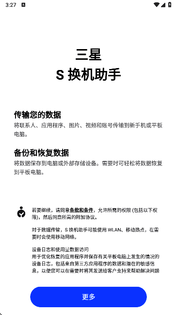 1、智能手机传输:在设备上安装三星智能开关应用程序,能轻松在Galaxy设备间传输数据。