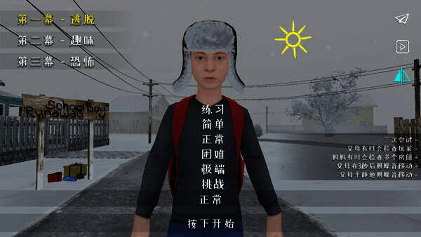 《逃离家暴逃跑男孩官方正版》是一款趣味十足且刺激的游戏。玩家扮演遭受家暴的小男孩,要收集道具,在家长眼皮底下寻找逃离房间的办法。游戏采用多结局设定,能让玩家玩上好几周,尽情体验密室逃生内容。