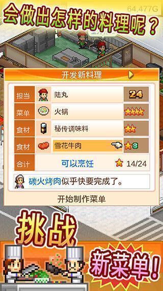 3. 玩家要经营自己的餐厅,逐步扩大规模、提升厨艺,吸引更多顾客。