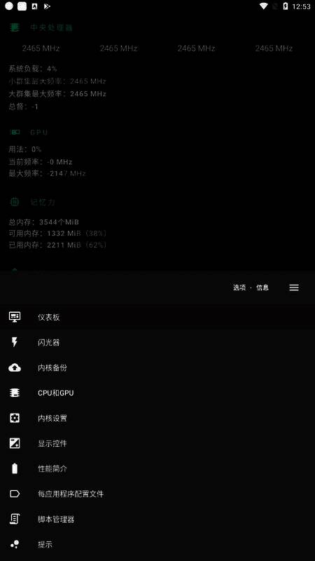1、可轻松创建、共享和加载CPU调控器配置文件,以延长电池寿命。能调整最大频率、最小频率、CPU调节器、CPU增强、热插拔、热量和电压(若内核或硬件支持)。