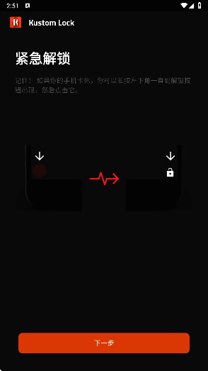 此外,该应用在紧急情况下可实现快速解锁,当手机卡顿,长按左下角直至解锁键出现,轻按即可。