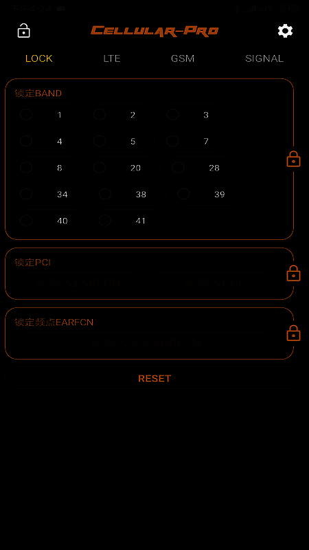 若要锁定网络频段,同样进入【锁网】页面,选择【锁LTE频段】即可。