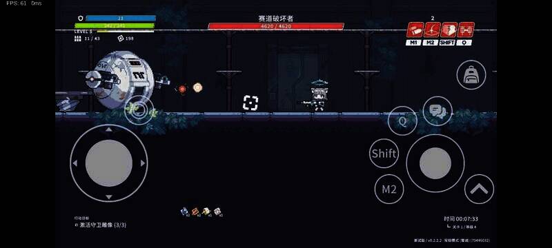 3、进入关卡后,左边控制移动,右边是技能、射击和跳跃按钮。