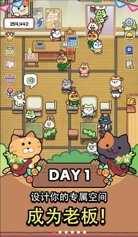 1、以猫咪经营餐厅为主题,可爱的美术风格和独特设定充满温暖与乐趣。