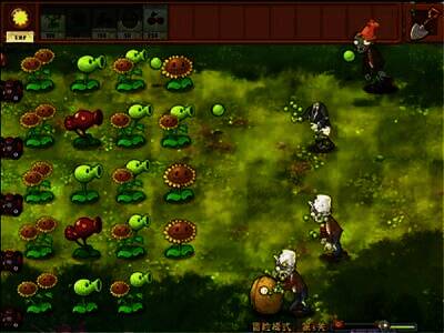 1. 僵尸出现在花园,玩家用植物阻止其前进。