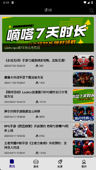 2、游戏推荐:嘀嗒加速器内置热门游戏推荐模块,可在此发现新游戏、了解热门活动,获取独家福利和礼包码。
