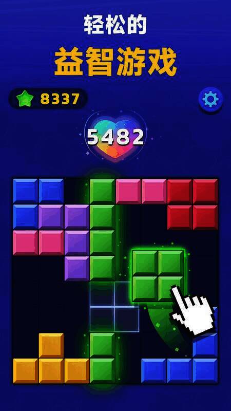 4、简单易上手:操作流畅,轻滑屏幕就能移动和旋转方块,适合各个年龄段的玩家。