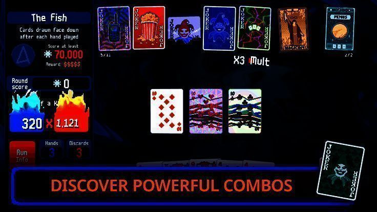 游戏中有超150张小丑牌,每张都有特殊能力,能极大改变回合局势。