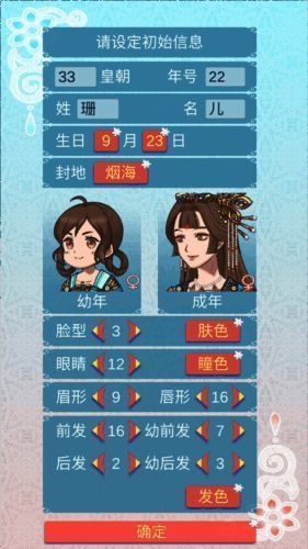 2. 编辑长公主的姓名、生日、封地、脸型、眼睛及发色等角色特征。