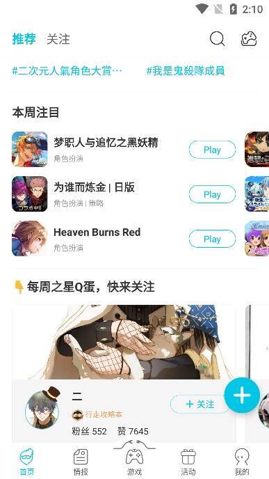 专业权威的游戏媒体资讯、深度点评、独家专访以及展览活动等,呈现得新鲜又及时。它是一个高端安卓应用商店,有来自中国、英国、日本和韩国的3000多款热门游戏,均由编辑部精心挑选推荐。这里有活跃的玩家社区,汇聚了全球经验丰富的玩家、动漫爱好者和多语言玩家,一起探讨游戏增添乐趣。还能体验动漫之爱,欣赏一系列QooApp玩家的奇思妙想故事。可以玩游戏、看评论、试玩游戏,并和志同道合者交流。