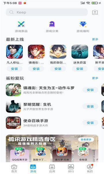 2、新品上线:推荐最新发布的游戏和应用。
