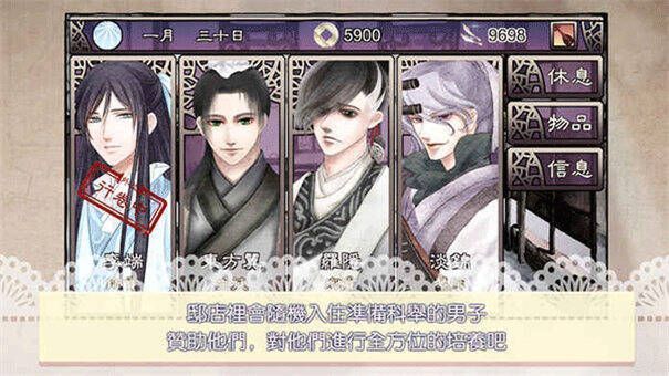 3、若只求达成HE结局,专注攻略一个角色,好感度足够即可,考不考进士、有没有5万金都没关系,大哥是在开玩笑。
