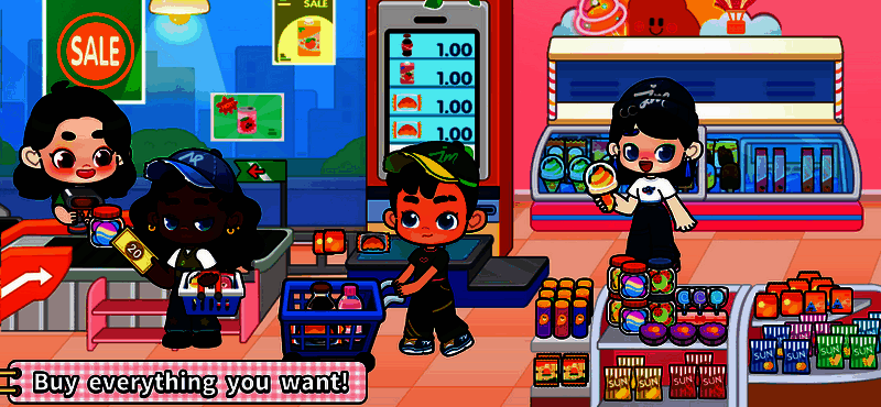 6、游戏世界的每个角落都是想象的舞台。可以带宠物游泳、穿着新潮衣服逛街、参观不同商店、组织街头表演。