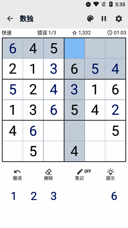 该游戏有经典的数独谜题,完美还原传统玩法,让玩家体验纯粹的数字谜题挑战。有多个难度供玩家根据自身水平选择,满足不同玩家需求。界面设计简洁清晰,玩家能轻松掌握每个格子状态,便于操作。还提供提示和撤销功能,帮助玩家解决难题,减少困扰,增添互动性。