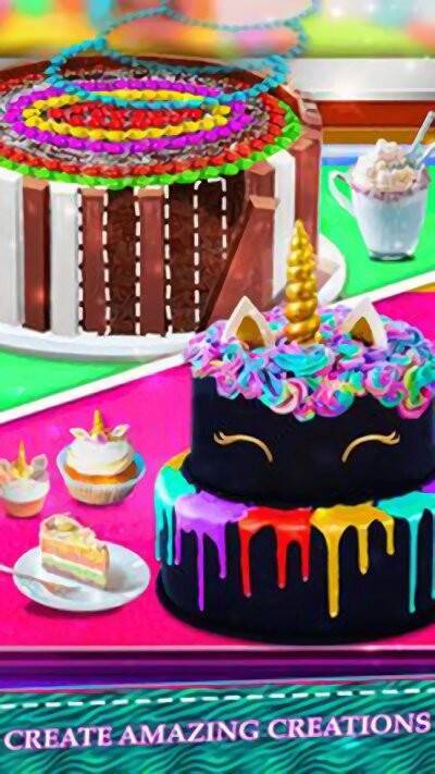 梦幻的彩虹独角兽主题与甜点制作相结合,游戏画面清新可爱、色彩鲜艳,带来愉悦的视觉体验。