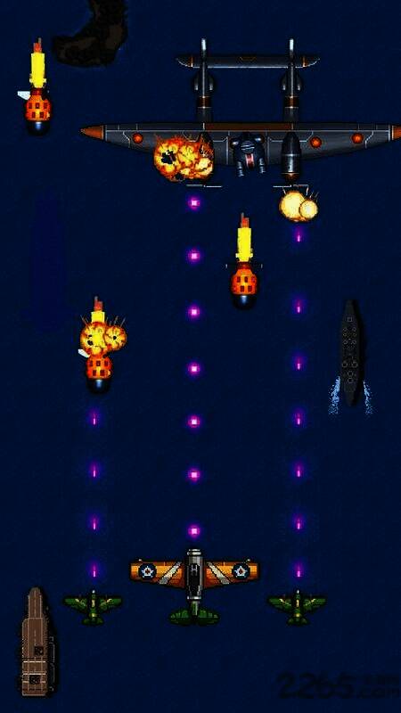 - 游戏内有多种武器和道具,击败敌机、收集道具可提升火力与防御。