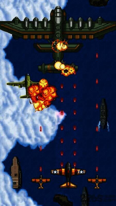 - 设有升级系统,击败敌机获金币,可用于升级战机和购置强力武器。