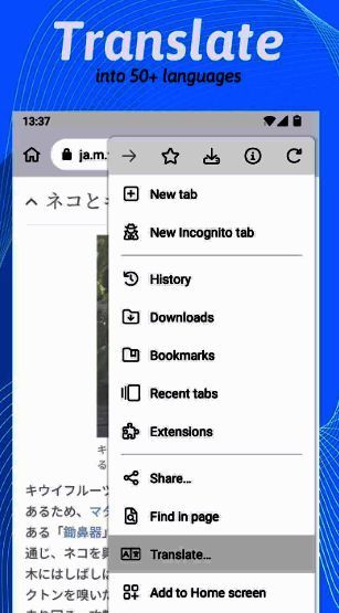 Kiwi浏览器纯净版支持60多种语言,集成多个翻译器,方便用户翻译任意网站内容。还包含底部工具栏、手势操作、下拉悬停、扩展置顶等实用功能,提升了用户的操作便利性。