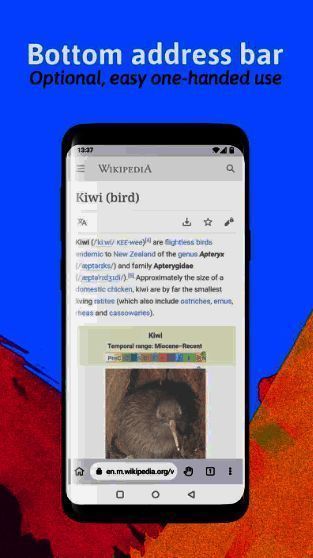 4、快速加载:凭借优化的渲染引擎,KiwiBrowser能够快速加载网页,为用户带来流畅的浏览感受。