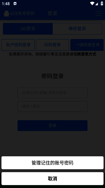 5、若遇到登录问题,可点击“备用登录”,通过QQ授权直接登录。