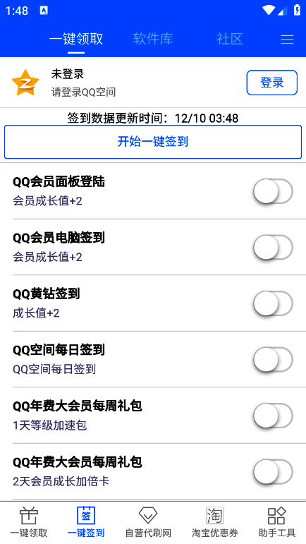 3、支持一键批量签到,涵盖QQ会员、年费福利等。