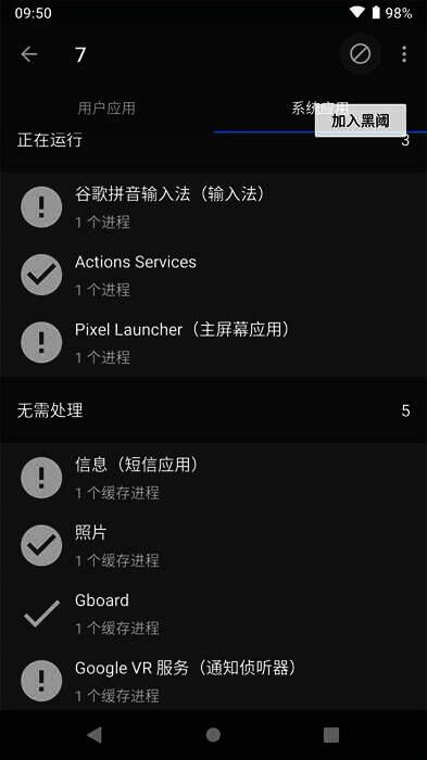 【即时响应】待机超时或从多任务窗口划掉时,黑阈会立刻强行停止黑阈清单中的应用。