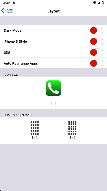 1、集成主屏幕、通知中心、控制中心、屏幕锁定、辅助触摸等功能。2、可自由改变应用图标样式。3、支持智能分组、应用分组和无限分组,组内应用数量不限。4、能设置多种手势,如向上滑动、向下滑动和按键动作。