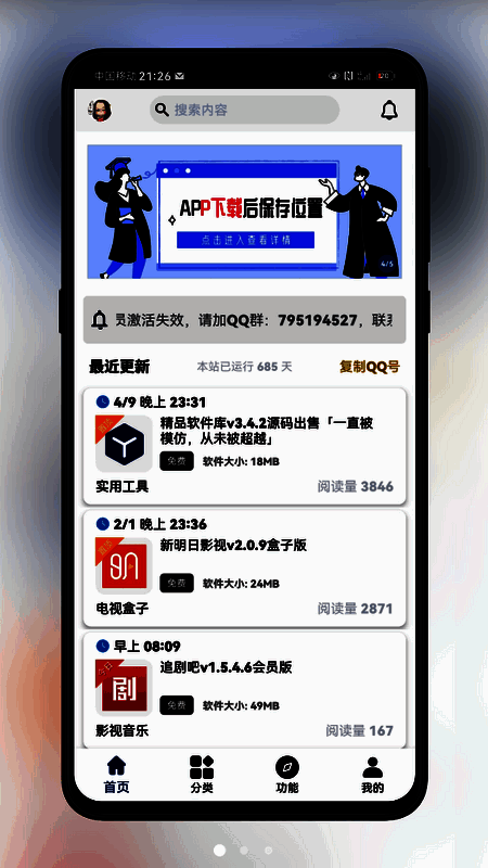 酷酷软件免费下载安装手机版是一款极为实用的免费资源共享平台。其资源丰富且完整,每日不定时更新,涵盖各类应用程序、游戏、工具及安装包,使用不受限,不影响日常使用。界面简约易用,为用户带来友好下载体验,实时同步国内外最新应用动态,涉及众多流行与专业软件领域。
