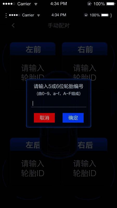 2、手动配对:安装好胎压后,在手动配对界面,任选一个胎压输入编号并确认。