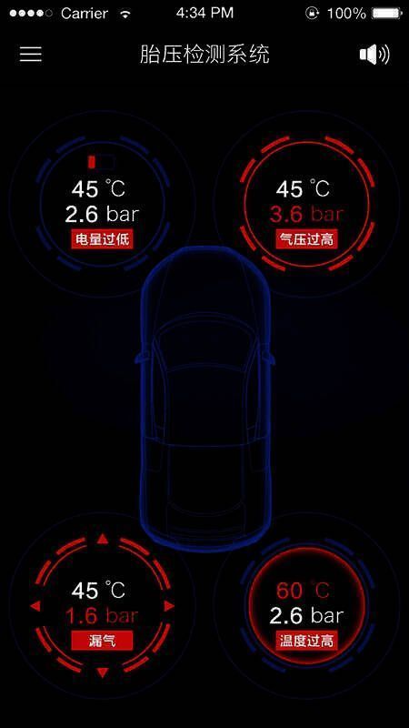 1、语音播报:当胎压过高、过低、温度过高或电池电量低时,会语音告知胎压情况。