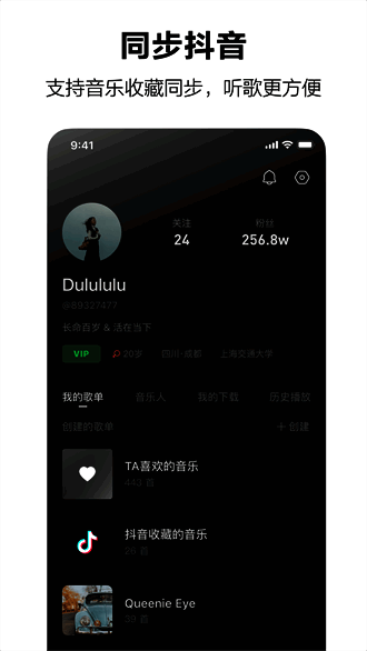 2. 支持同步 TikTok 音乐收藏,让从视频中收集好音乐变得轻松,下次听歌更便利。