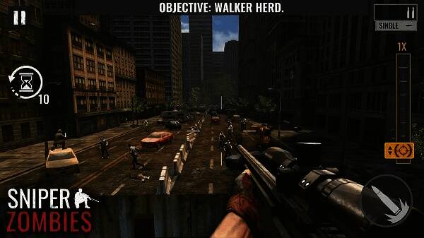1、紧张刺激的射击体验,玩家将在不同的战斗环境中,体验精准狙击与僵尸对抗的快感;