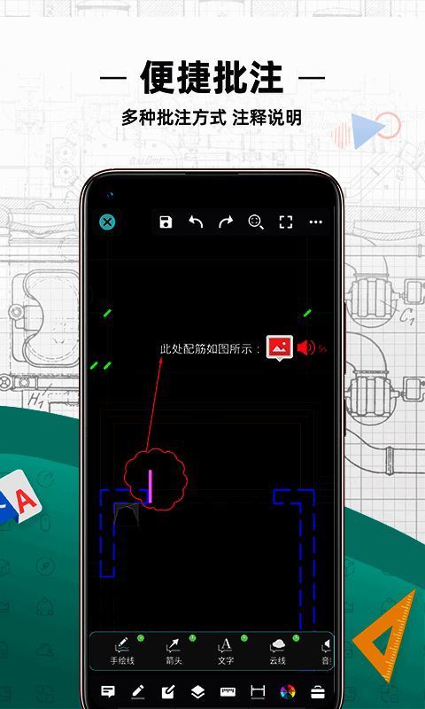 2、图纸可以以云存储的形式导入或快速打开,还可以添加注释。