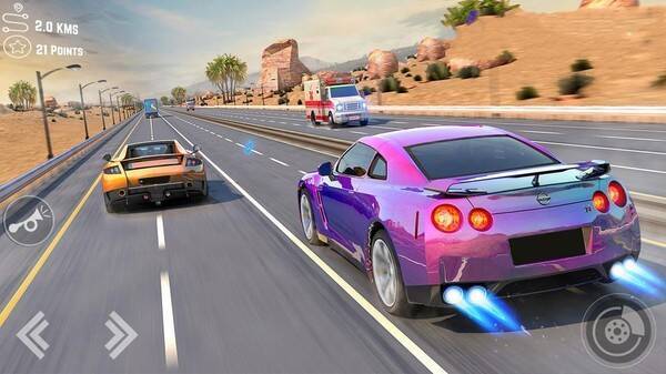 1、竞速挑战:于城市公路上和其他赛车手极速对决,凭借巧妙操作超越对手,争夺第一名。