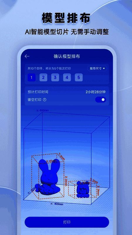 1、支持一键打印模型,操作便捷,节省时间和精力。