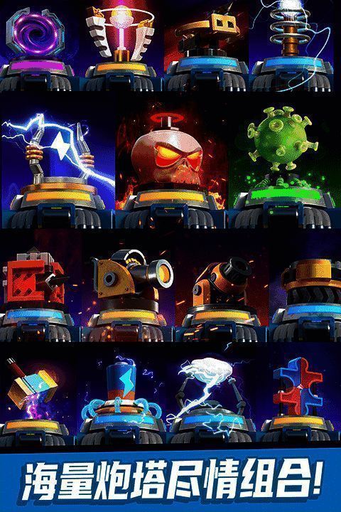 4、多种炮塔可供选择,不同炮塔技能和特点不同,提供多样战术选择。
