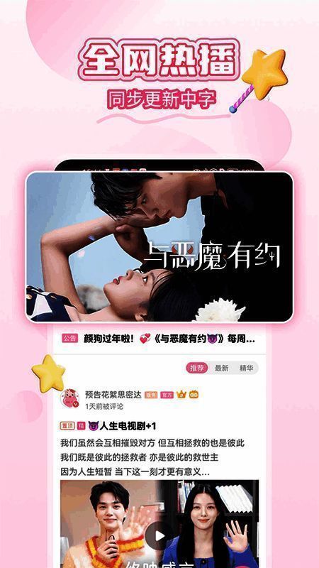 韩小圈app官方正版是一款专为韩剧爱好者打造的在线免费追剧平台。这里汇聚了海量精彩的电视剧资源,无论是经典韩剧,还是最新热播剧集,统统都有,而且更新速度与官方同步。用户无需花费一分钱,就能轻松畅享韩剧、韩综、韩影等丰富内容,随心挑选口碑好剧,打造专属追剧大本营。平台画质高清,更新迅速,让你追剧毫无压力。感兴趣的朋友别错过下载。