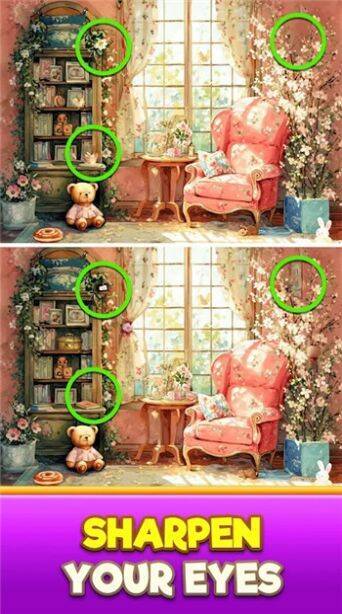 差异梦想之家最新版游戏是一款能放松心情的休闲找茬游戏,适合各年龄段玩家。玩家在游戏中可挑战观察力,在创意美丽的场景中轻松解谜。每关设计精致,画面有层次感,差异丰富,节奏轻松无压力,适合打发时间、放松心情。若你喜欢找茬游戏,这款游戏不容错过。
