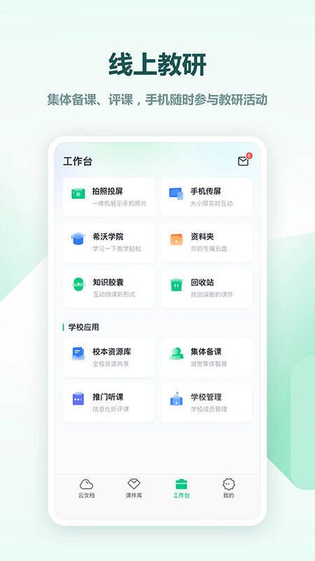1、云账号服务系统:备课课件和资源可上传到云平台,教学时一键下载使用,无需存储设备。
