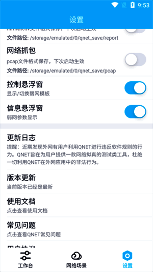 开启控制悬浮窗,便于在测试过程中实时调整网络参数。