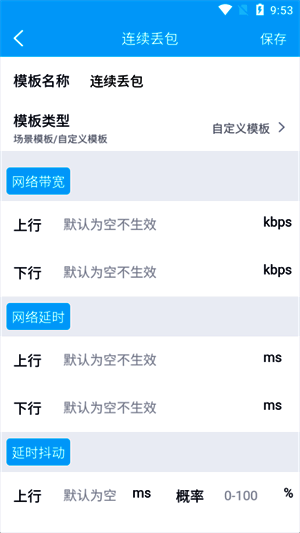 选择要模拟的方向(上行或下行),并针对性地调整对应的延时、带宽及丢包设置。
