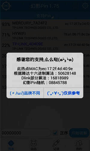 可能存在识别问题,可前往系统的WIFI列表查看,标注有(可使用WPS或受保护的网络可用)的热点均支持幻影Pin,可进行选择。若路由器未开启WPS功能,则不支持跑Pin,可使用幻影WIFI跑字典。