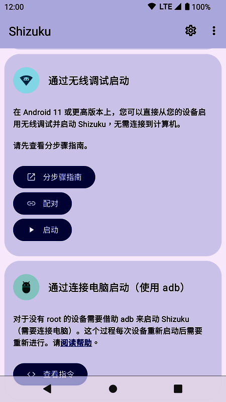 1. 在Shizuku首页「通过无线调试启动」模块中点击「配对」
