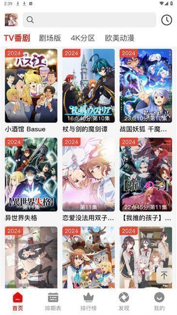 1. 平台汇聚了国内外各类流行动漫和电视剧,界面布局精致美观,操作简单便捷。最新动漫资源会及时显示在列表中,用户能轻松找到自己喜欢的动漫。