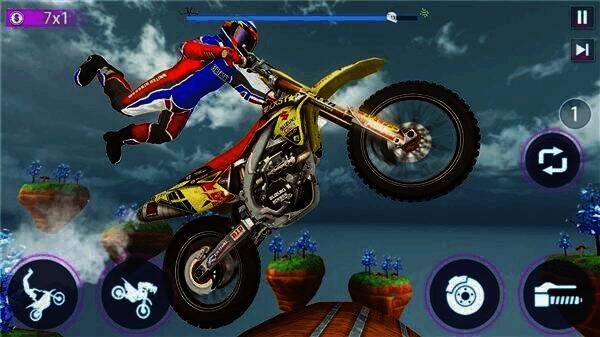 这是一款摩托车特技竞速类游戏,玩家会在各种复杂赛道中进行极速竞速和特技挑战。