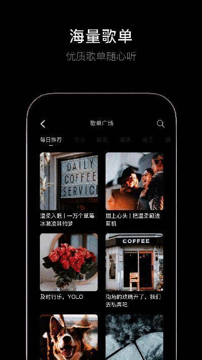 - 海量音乐库,涵盖各种流派。