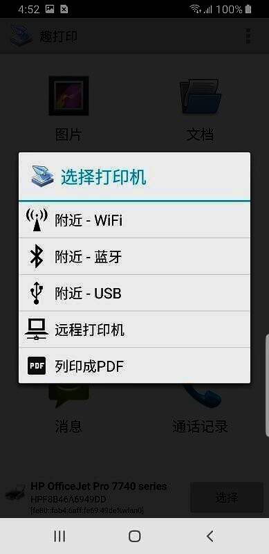 4、选择要打印的文件,点击“打印机”选择连接方式,如WiFi、蓝牙或USB。