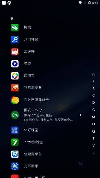 所有应用按字母顺序和使用频率整齐排列,无需滑动即可打开。
